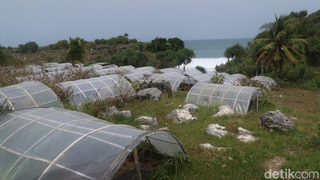 Pantauan detikJateng, puluhan tempat pembuatan garam atau tunel berjejer rapi di pinggir Pantai Dadapayam. Tampak pula beberapa tunel mengalami kerusakan pada bagian atapnya.