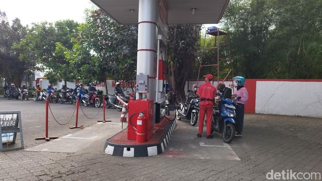 Dari pantauan detikjateng di lokasi pukul 14.25 sampai 14.45 memang tampak antrean mengular sepanjang SPBU hingga di badan jalan.