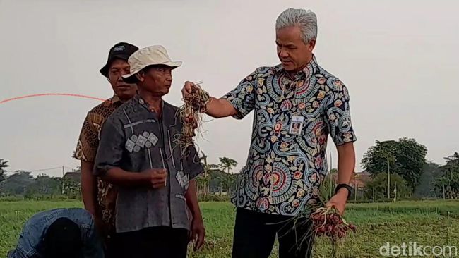 "Sekarang bisa dilihat, tanah di sini keras, tidak lagi gembur. Harus dimulai menggunakan pupuk organik agar mengembalikan kesuburan tanah," pungkas Ganjar.