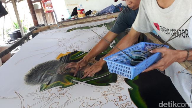 "Untuk produksi lama, sebulan paling 30-40 batik lukis wajah itu sudah banyak. Tapi kalau hujan produksi jadi melambat, karena kan tempatnya juga belum sebesar pabrik," ucapnya.
