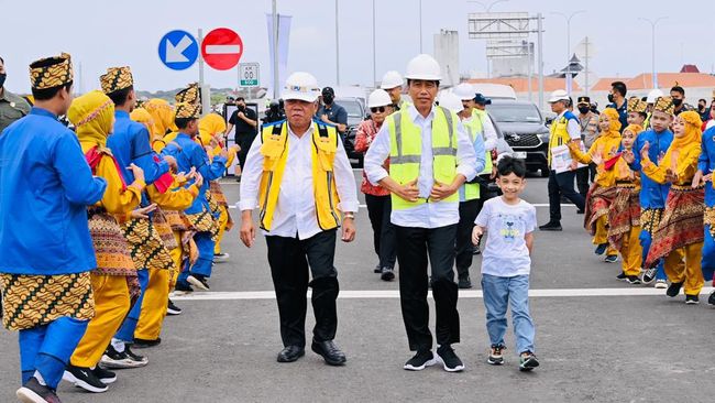 Presiden Joko Widodo (Jokowi) meresmikan tol Semarang-Demak seksi II hari ini. Ada pemandangan tidak biasa saat peresmian berlangsung. Yakni mantan Wali Kota Solo itu mengajak cucunya Jan Ethes.