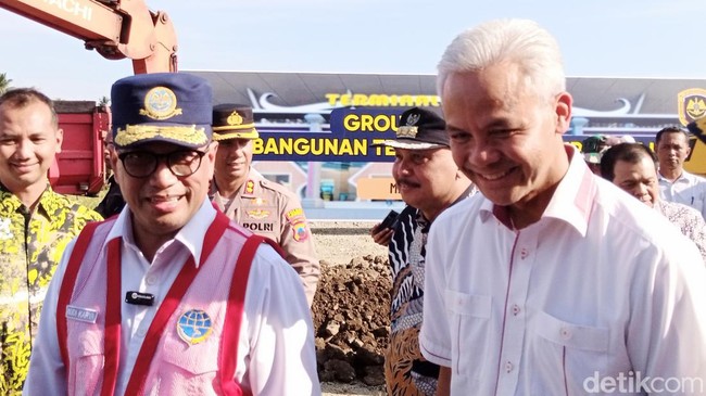 "Dengan mengucapkan bismillahirrahmanirrahim, maka ground breaking pembangunan terminal tipe A ini dimulai," ucap Budi sembari menekan tombol.