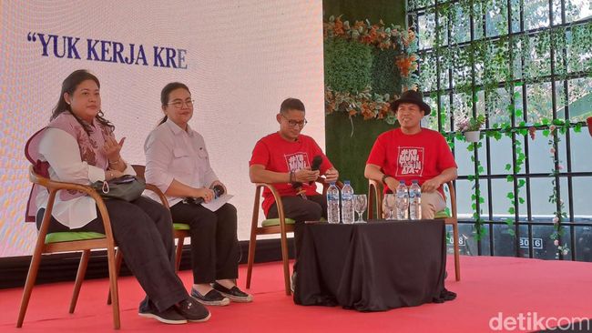 Menteri Parekraf Sandiaga Uno dan putri Puan Maharani, Pinka Haprani, duduk bareng bersama puluhan komunitas di Wonogiri. Keduanya membahas potensi wisata Wonogiri hingga branding kuliner mi ayam dan bakso.