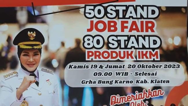 "Berempat di Grha Bung Karno, Buntalan, Klaten Selatan. Ada 50 stand job fair dan 80 stand IKM dalam kegiatan tersebut," ungkap Rina.