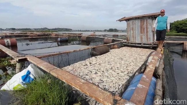 "Dampak cuaca buruk. Beberapa hari ini kan cuaca buruk. Mendung, nggak ada angin, kemudian langsung hujan itu kan ada namanya upwelling, masa air bawah yang mengandung racun itu ke atas meracuni ikan-ikan, sehingga matinya massal," jelas dia.
