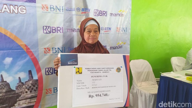Pembayaran uang ganti rugi (UGR) tol Jogja-Bawen tak selalu fantastis. Salah satu warga Kabupaten Magelang, Maryati (70) menerima UGR senilai Rp 954.740.