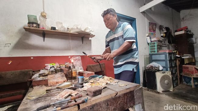Perajin lencana berbahan dasar kuningan di Desa Pasir Wetan, Kecamatan Karanglewas, Kabupaten Banyumas kebanjiran orderan. Lencana berupa pin garuda dan tanda pangkat ini digunakan untuk upacara Agustusan atau 17 Agustus.