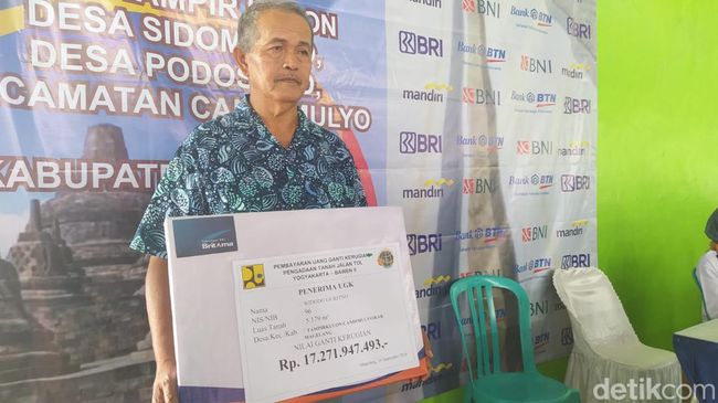 Seorang petani di Kabupaten Magelang, Widodo Guritno (66) menerima pembayaran uang ganti rugi (UGR) tol Jogja-Bawen sebesar Rp 17,6 miliar. Tanah yang terdampak merupakan tanah warisan dari orang tuanya.