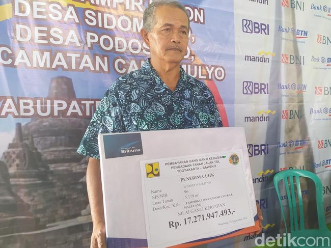 Mbah Widodo yang bernama lengkap Widodo Guritno (66), petani asal Kecamatan Candimulyo, Kabupaten Magelang, menerima uang ganti rugi (UGR) tol Jogja-Bawen Rp 17,6 miliar. Awalnya dia merasa tidak cocok jika tanah warisan dari orang tuanya itu kena proyek tol. Begini kisahnya.