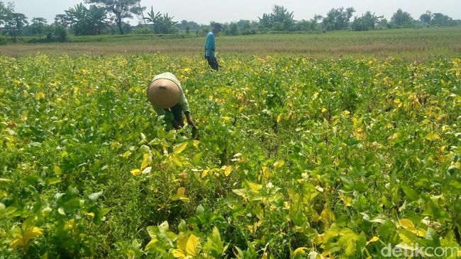 Pantauan detikJateng di Desa Temuwangi, Kecamatan Pedan, para petani kedelai membabat tanaman karena lahan digenangi air hujan dan layu. Sebagian tanaman yang masih muda akhirnya dibiarkan.
