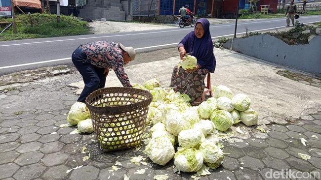 "Kalau dihitung-hitung rugi, daripada buang rezeki (hasil panen). Biaya nglangsir atau membawa dari lokasi panen sampai jalan raya Rp 300 per kilonya. Sedangkan harga kubis cuman Rp 300 ya pas, untuk nglangsir," sambung Agung.