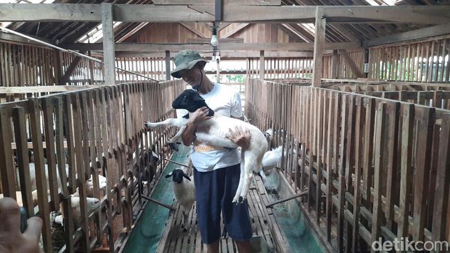 Saat detikjateng berkunjung ke kandang ternaknya, Udhi bersama istrinya sedang sibuk memberikan makan untuk domba dan kambing. Ada 100 ekor kambing dan domba yang dipeliharanya di kandang.