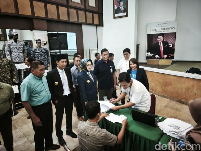 Direktur Utama BPJS Ketenagakerjaan, Anggoro Eko Cahyo, meninjau penyerahan berkas pencairan Jaminan Hari Tua (JHT) bagi eks karyawan PT Sritex, Sukoharjo, yang di-PHK. Anggoro mengungkap besaran JHT yang bakal diterima karyawan tergantung masa kerja dan gajinya.