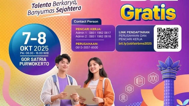 "Pendaftaran bisa mendaftar melalui online ya, melalui https://bit.ly/jobfairbms2025. Atau yang langsung datang ke lokasi juga bisa, nggak masalah," kata Wahyu saat dihubungi, Senin (6/10/2025).