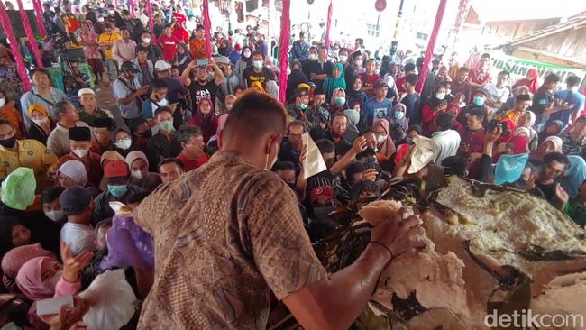 Kue lopis dengan berat beberapa ton itu ludes dalam waktu 2 jam diperebutkan warga.