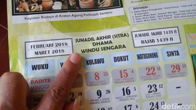 "(Kalender Jawa) Ya sekarang ada yang pakai, tapi tidak seperti kalender sekarang. Mpu Hubayun itu menciptakan sebenarnya untuk memperbaharui kalender Jawa lain yang lebih kuno lagi," ucap Hendro.
