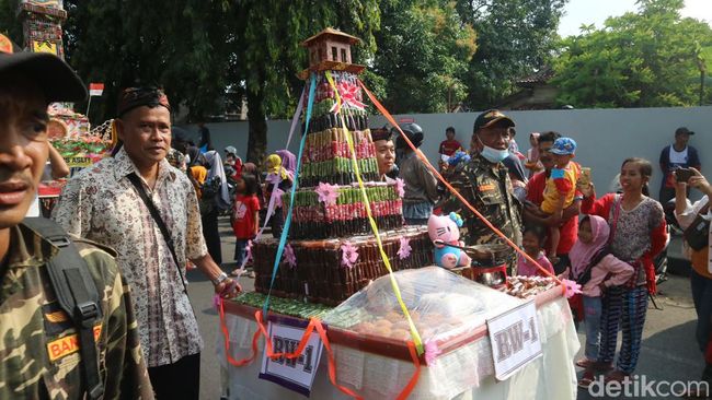 Acara begitu meriah disaksikan ratusan warga. Tampak peserta kirab terdiri dari anak-anak sekolah hingga ibu-ibu membawa nampan berisi jenang. Kemudian ada tiga gunungan besar berisi jenang.