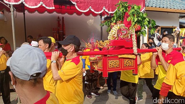 Pantauan detikJateng di Klenteng Tay Kak Sie, Semarang, Sabtu (30/7/2022), terlihat arak-arakan barongsai, kuda, patung, dan lainnya tiba sekitar pukul 16.00 WIB. Arak-arakan itu datang dari Klenteng Sam Poo Kong yang diketahui identik dengan Laksamana Cheng Ho.