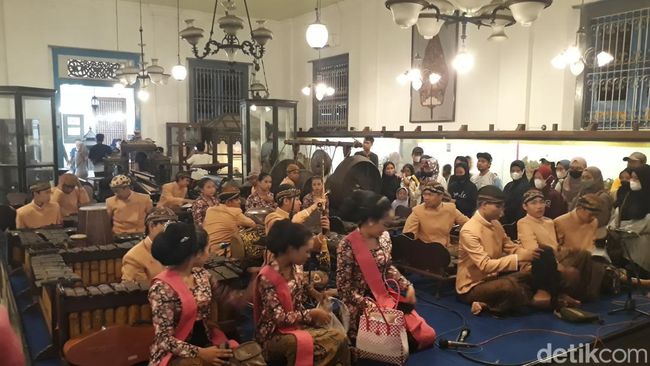 Para pengunjung terlihat memadati ruangan tengah museum yang merupakan tempat gamelan kuno tersebut. Para pengrawit dan sinden tampil dengan membawakan beberapa lagu.