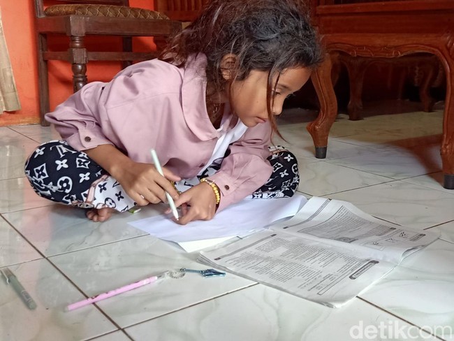 Saat detikJateng bertandang ke rumahnya di Desa Pringamba, Kecamatan Sigaluh, Kabupaten Banjarnegara, Jawa Tengah, Putri terlihat sedang duduk santai di ruang tamu sambil bermain ponsel.