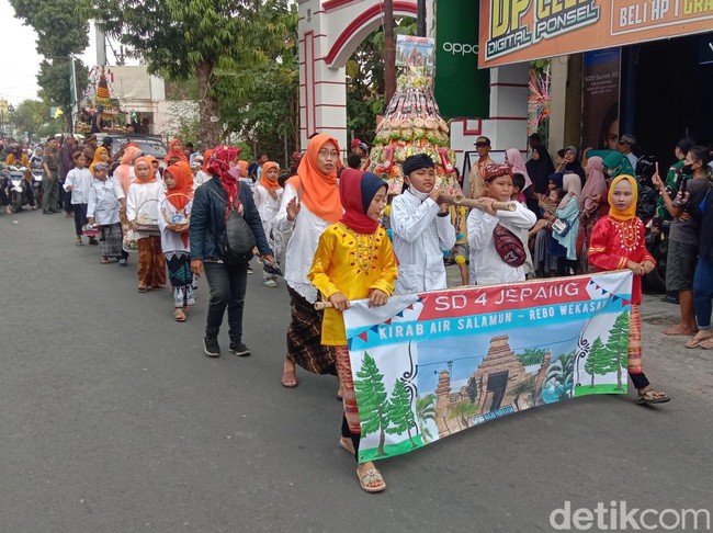 Seribuan warga mengikuti Kirab Air Salamun Rebo Wekasan di Desa Jepang, Kecamatan Mejobo, Kabupaten Kudus, Selasa (20/9) siang. Dalam acara tradisi tersebut, puluhan gunungan dikirab, menempuh rute sejauh 2 kilometer. Apa itu tradisi Rebo Wekasan? Berikut penjelasannya.