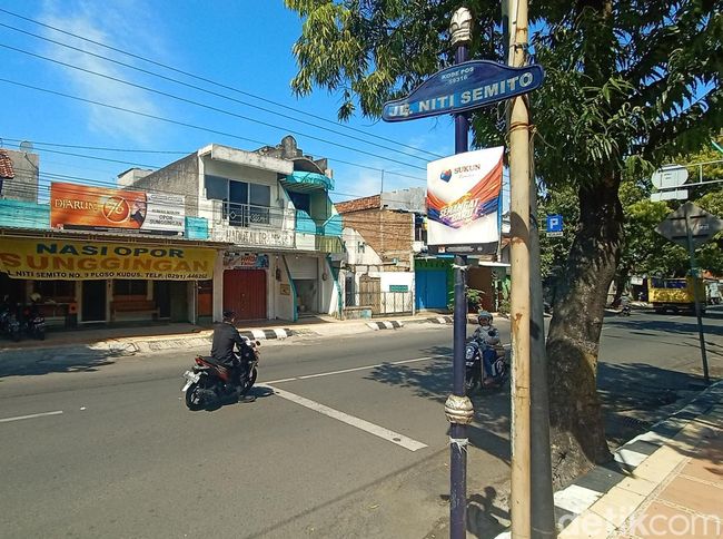 Plang Jalan Nitisemito sudah tampak dari kejauhan sebelum memasuki jalan kawasan Kantor Pelayanan Pajak (KPP) Pratama Kudus. Arus lalu lintas di jalan tersebut tampak padat pada Selasa (27/9/2022) siang.