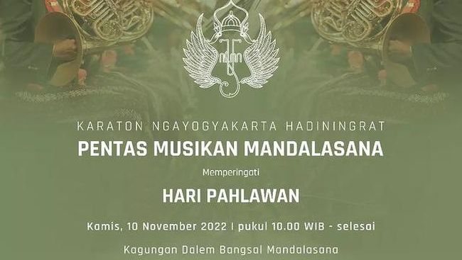 "Pentas Musikan Mandalasana Memperingati Hari Pahlawan ini dapat Sahabat saksikan secara langsung di Bangsal Mandalasana tanpa perlu reservasi," tulis @kratonjogja, dikutip Kamis (10/11/2022).