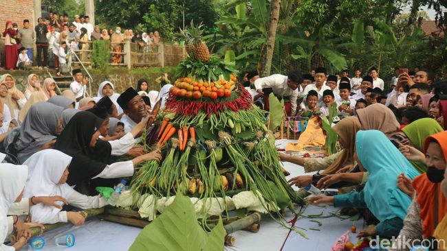 "Masing-masing RT membawa nasi tomplingan, nasi yang dibungkus dengan daun pisang atau pakai mangkok," jelas dia.