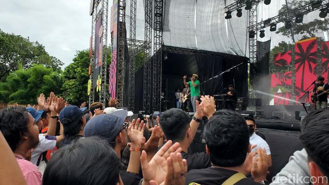 Sapaan tersebut disambut riuh gemuruh penonton. Terlihat juga beberapa penonton melemparkan balon besar di kerumunan yang menambah meriahnya suasana. Bahkan balon tersebut sempat masuk ke atas panggung.