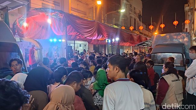 Pantauan detikJateng, Jumat (20/1/2023), terlihat Pasar Semawis yang berada di area pecinan Semarang sudah ramai sejak pukul 18.30 WIB. Bahkan para pengunjung sesekali harus berdesakan untuk berjalan di Jalan Wot Gandul dan Jalan Gang Baru yang menjadi venue pasar Imlek itu.
