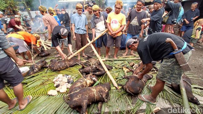 Untuk tahun ini masyarakat adat Banokeling menyembelih 31 ekor kambing dan 1 sapi yang berasal dari sumbangan anak putu. Nantinya hewan tersebut dimakan bersama-sama usai ziarah makam yang dilaksanakan pada siang hari ini.