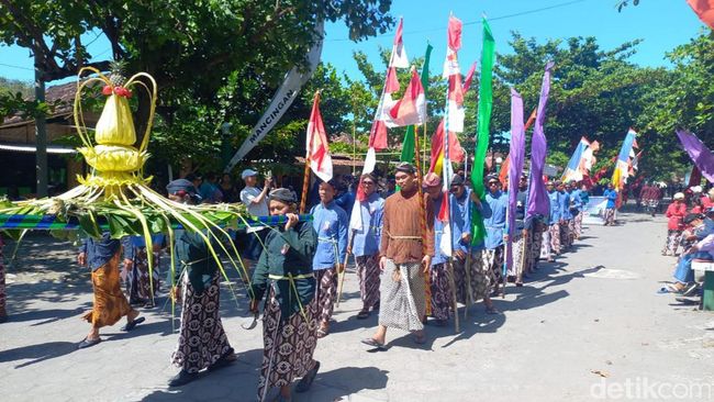 Acara ini digelar pada Senin (23/5/2023) lalu di Pantai Parangkusumo dan diikuti ratusan orang berbusana adat Jawa. Mereka terlihat mengarak gunungan berisi hasil bumi. Tampak pula dalam arak-arakan tersebut warga membawa umbul-umbul beraneka warna.
