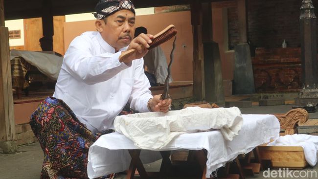Pantauan detikJateng, penjamasan dilakukan di area Tajuq Menara Kudus, Senin (3/6). Prosesi penjamasan diawali dengan ziarah ke makam Sunan Kudus sekira pukul 07.00 WIB. Setelah itu, dengan diiringi bacaan salawat juru kunci menurunkan peti berisi keris Kiai Cinthaka dan diserahkan kepada petugas penjamasan.
