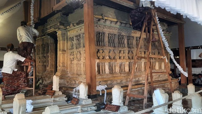 "Sejak hari Senin dimulai pembuatan luwur baru, melibatkan 35 pekerja. Mulai Senin sampai Selasa mulai tahapan Rabu sebagian pembuatan dan pemasangan," kata Kharis kepada detikJateng ditemui di lokasi, Rabu (26/7/2023).