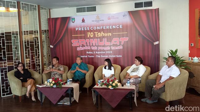 "Angka 70 tahun itu dimulai setelah bapak, dan ibu almarhumah Srimulat mendirikan Keroncong Avond. Lalu memutuskan menjadi Aneka Ria Srimulat dan masuk ke THR Surabaya," kata Koko saat konferensi pers di Solo Sunan Hotel, Kamis (3/8/2023).