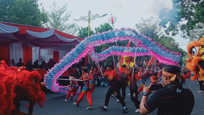 Penampilan seni Barongsai dari komunitas Tionghoa pukul 15.30 WIB lebih dulu menggebrak stage panggung Forkompimda. Sekitar 15 menit aksi mereka mampu membuat penonton merangsek mendekat.