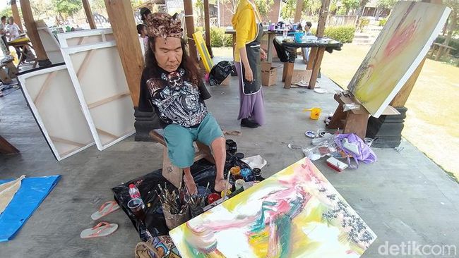"Waktu Taman Kanak-kanak (TK) pelajarannya menyanyi, melukis, menari. Yang membuat saya menjadi cinta melukis saat pelajaran menggambar. Setelah kuliah, saya tergabung asosiasi pelukis mulut dan kaki di Austria sampai saat ini," kata Sadikin kepada wartawan saat ditemui di sela-sela melukis di Balkondes Wanurejo Borobudur, Kamis (21/9/2023).