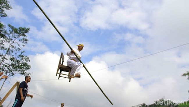 Dalam atraksi ini pemain akan berada diatas seutas kawat besi dengan duduk di kursi, atraksi ini sangat memerlukan keseimbangan.