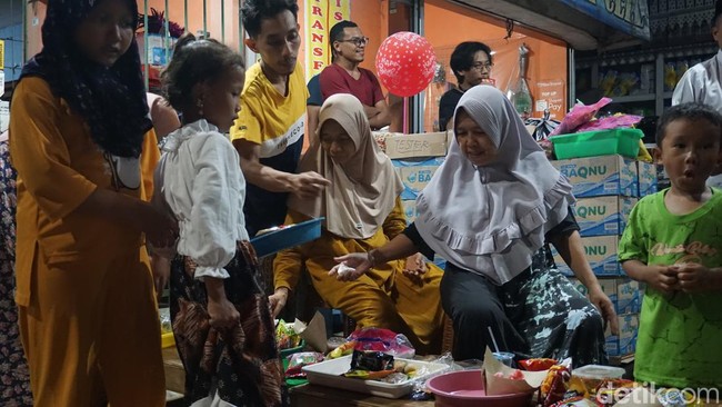 Pantauan di lokasi, Minggu (31/3/2024), pukul 18.50 WIB, peserta tradisi ini mayoritas merupakan anak-anak. Mereka tampak membawa nampan berisi jajanan di Jalan Baru Jalan Kyai Turmudzi Kampung Sampangan. Anak-anak ini lalu menukarkan jajanan yang mereka bawa sesuai dengan selera dan makanan yang tersedia.