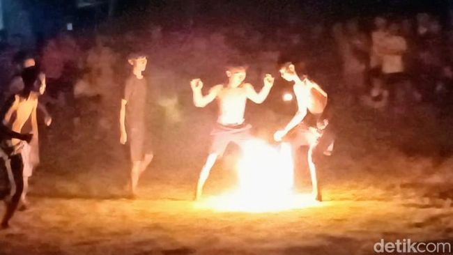 Nur Kholis menjelaskan usai acara tersebut di atas, barulah beberapa klub bola api yang masing-masing terdiri dari 5 orang pemain bertarung menggiring bola api dengan kaki telanjang tanpa sepatu untuk dimasukkan ke gawang lawan. Sorak sorai penonton pun ikut mengiringi jalannya pertandingan.