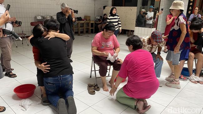 Pantauan detikJateng, ada sekitar 8 keluarga yang mengikuti acara basuh kaki di Gedung Rasa Dharma, Kawasan Pecinan, Kecamatan Semarang Utara. Selain diikuti orang tua dan anak, ada pula sepasang suami-istri yang saling membasuh kaki di acara yang digelar Perkumpulan Sosial Boen Hian Tong.