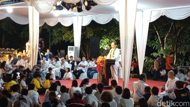 "Tadi semangatnya adalah bagaimana dengan cinta kasih, welas asih kita harus bisa menjaga persatuan, perdamaian di negeri kita," katanya.