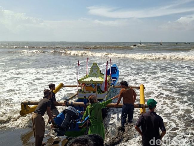 "Ini nanti dilarung di belakang (selatan) Nusakambangan. Perjalanannya (naik perahu) sekitar setengah jam. Ini anginnya lagi besar, jadi kita harus ekstra hati-hati membawa larungan ini," pungkasnya.