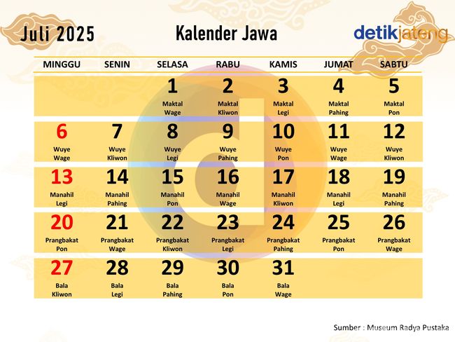 Kalender Jawa Juli 2025 Lengkap dengan Weton dan Wuku