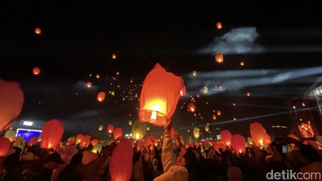 "Tadi susah sekali menerbangkan lampion ternyata. Karena memang baru pertama. Untungnya tadi dibantu sama wisatawan lain," ujarnya.
