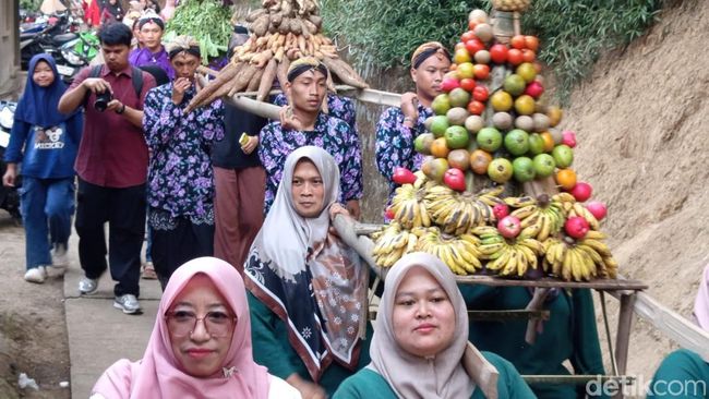 Menariknya, di sela-sela gunungan yang diarak tersebut diberi bungkusan uang kertas. Besaran uang kertas bervariasi ada yang pecahan Rp 2.000, Rp 5.000 dan Rp 10.000.