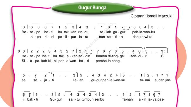 Demikian lirik lagu Gugur Bunga ciptaan Ismail Marzuki dan not-sejarahnya. Semoga bermanfaat!