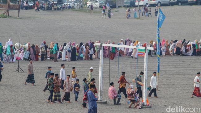 Bantul - Umat muslim melaksanakan salat Idul Adha 1443 H, di Gumuk Pasir, Parangtritis, Bantul, Yogyakarta, Sabtu (9/7/2022). Seperti apa potretnya?