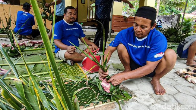 Daun Kelapa-Jati Jadi Pengganti Plastik Daging Kurban di Kulon Progo