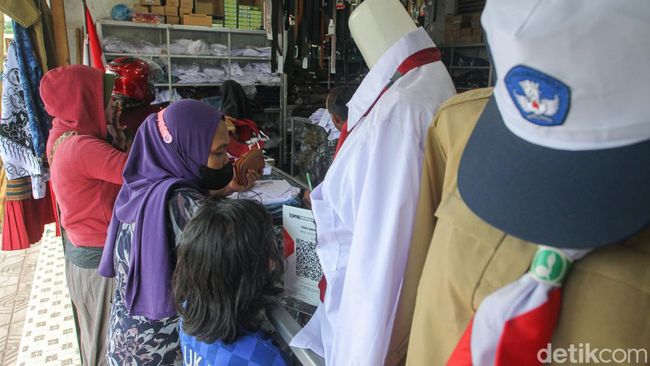Yogyakarta - Memasuki tahun ajaran 2022/2023, orang tua di Jogja berburu seragam sekolah bagi anaknya. Salah satunya di toko seragam sekolah, Jalan Ibu Ruswo, Kota Jogja.
